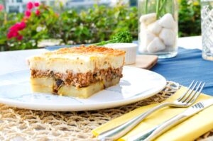 Pastitsio patří k nejznámějším řeckým zapékaným pokrmům. Má své kořeny už v době, kdy na řeckých ostrovech panovaly různé vlivy — italské, turecké i byzantské. Jde o pokrm, který se připravoval při slavnostech, a dodnes je symbolem domácí pohody. Kombinuje lehce kořeněné maso, rajčatovou omáčku, semolinové makarony a máslový bešamel, který vše spojí do jemné, lahodné vrstvy.